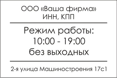 Наклейка "Часы и график работы" для магазинов, ресторанов и других предприятий. Печатается на белой или прозрачной пленке. Прозрачная пленка может быть наклеена как снаружи, так и изнутри помещения.