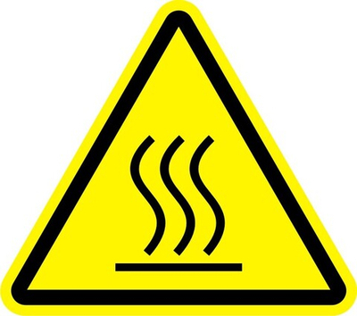 Табличка (наклейка) "Горячая поверхность" необходим для рабочих мест и оборудования, имеющих нагретые поверхности.