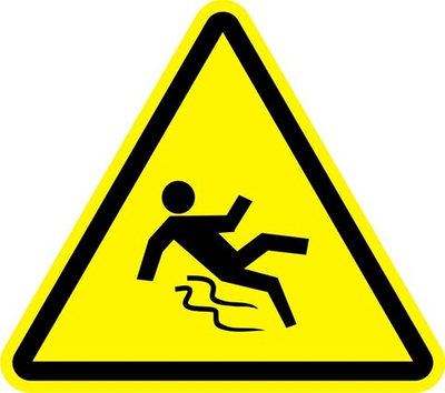 Знак "Скользко" призывает быть бдительным на территории и участках, где имеются скользкие места.